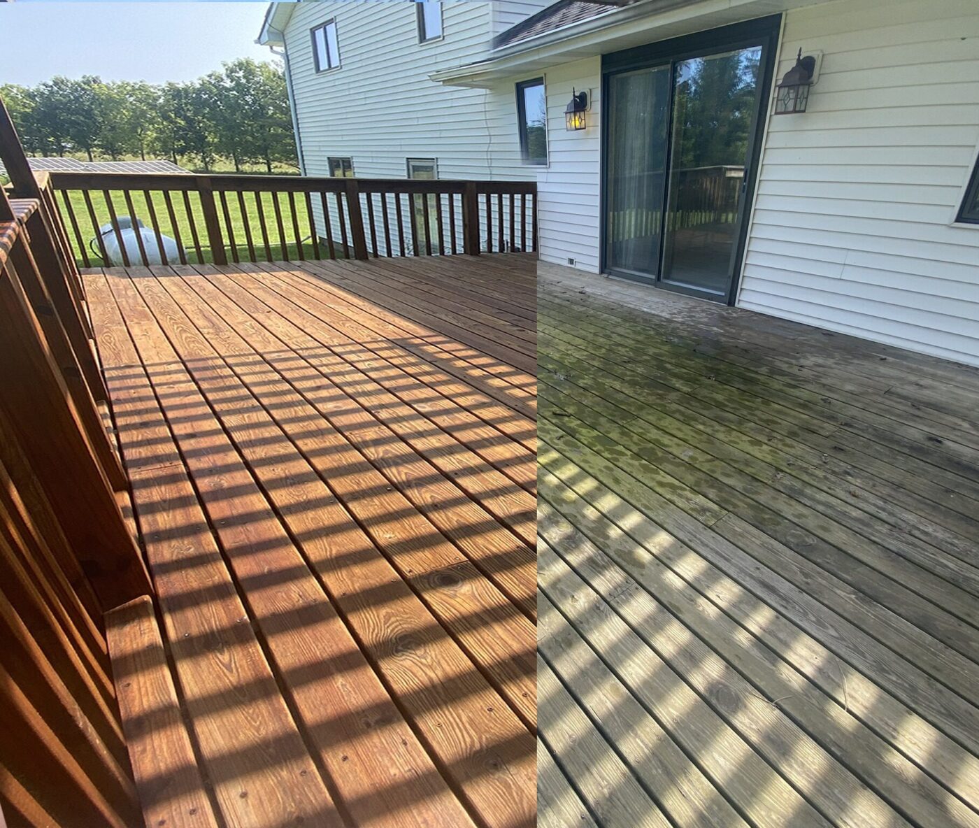 Our team at River City Pressure Washing utilizes a comprehensive range of cleaning methods to restore your deck to its original beauty. We assess each deck individually, choosing the most effective approach—whether it’s gentle soft washing for delicate surfaces or powerful pressure washing for tougher grime. Our state-of-the-art equipment allows us to safely and efficiently remove dirt, algae, and built-up grime, revealing the true character of your deck. For homeowners in Peoria, IL, and the surrounding areas, we also offer residential pressure washing services that can refresh your entire outdoor space, from decks to patios and more. No matter the material or condition, our team is dedicated to delivering a like-new finish that enhances your property’s curb appeal and ensures your deck is clean, safe, and ready for enjoyment.